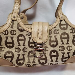 Small Etienne Aigner handbag. Double strap, 3 compartments. 9 x 5 inches. Really cute. Perfect condition. This is very small, like a wallet with straps.