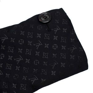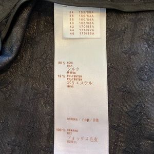 This is a very unique & remarkable LOUIS VUITTON Monogram Trench Coat. This light weight, trans-seasonal coat converts into a vest, above the knee coat or bolero jacket. The coat is double breasted with waist tie, bracelet sleeves, and tortoise shell buttons with Louis Vuitton embossment. Raised texture monogram weave in black with metallic sheer. Fox fur collar is detachable. There are 2 side pockets and vented back slit. Jacket comes with LV hanger and garment bag. Cost in prestine condition!