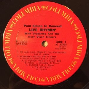 Paul Simon -“Paul Simon In Concert Live Rhymin’”LP