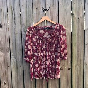 Willi Smith - Maroon Sheer Floral Boho Blouse - M