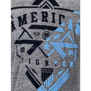AMERICAN FIGHTER Men's T-Shirt EASTERN RAGLAN Athletic Biker Gray MMA S- 3XL