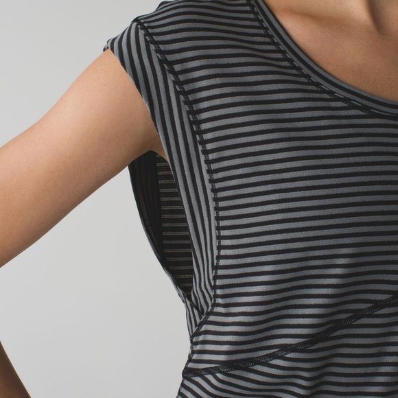 SOLD Lululemon Get Sweat Tee Black and Grey Striped Size 4