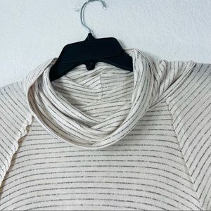 Gorgeous ivory grey pin striped long sleeve tunic, super soft knit material, cowl neckline, unfinished hemline, only worn once so in like new condition