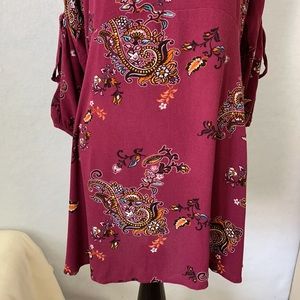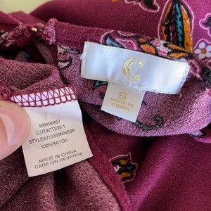 Charming Charlie Purple Paisley Bunch Sleeve Above Knee Dress. Size Small measures: 20” (40”D) armpit to armpit, 36” waist, 30.5” length. Very cute. Preowned, better than normal wear. No discoloration, fading, stains, rips or holes. Clean, smoke free home.