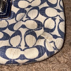 Coach canvas logo crossbody bag. Please refer to pictures for staining/signs of wear. Still in great shape!