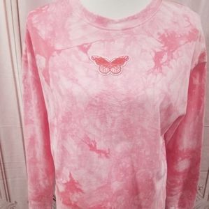 MWT Womens All in Favor, pink tie dye long sleeve tee, large