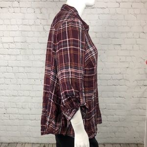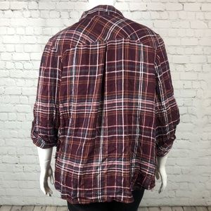 Soft and Lightweight Burgundy Plaid Utility Shirt by Style & Co. High Low Style and Sleeves Can Be Rolled Up Or Down. Size 3X