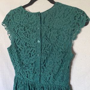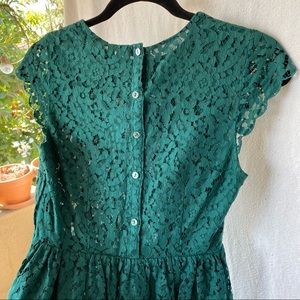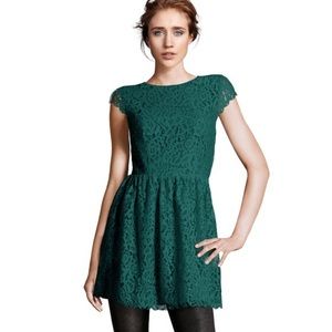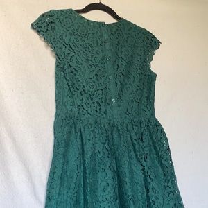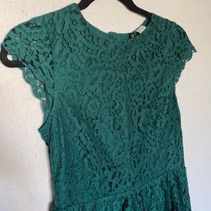 Offers are welcome! H&M Divided Forest green floral print lace dress. Has a forest green inner lining, side zipper, button back, scalloped lace on bottom and sleeve trim. Size 4