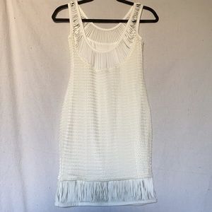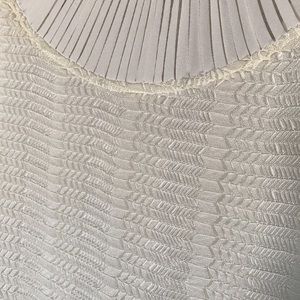 Offers are welcome! Urban Outfitters Lovers + Friends bodycon dress in cream with pleat stripe on neckline and bottom hem. Chevron zigzag patterned overlay with soft inner lining. Excellent condition, never worn. Size medium, but could fit a small