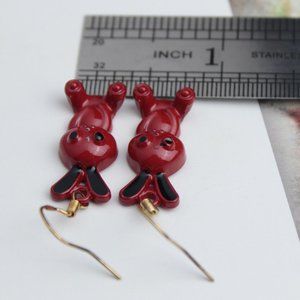 925 Sterling silver hook Red cartoon charm gold tone drop earring Jewelry for woman