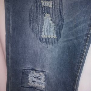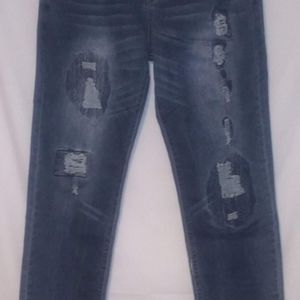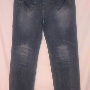 These brand new mens dark blue distressed premium blue jeans have 5 pockets. one button closure. embroidered design on the back pockets. Material cotton,polyester#distressed#ripped#jeans#choppshop