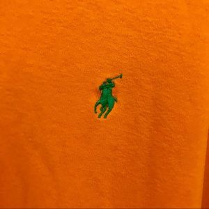 2 for $42 - 3 for $60. Polo Ralph Lauren orange & green cotton polo, size L custom fit. EUC. No visible trace of wear, lots of life left. Ideal with denim or white pants. Relax in style spring through fall.