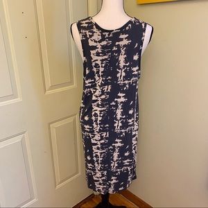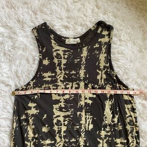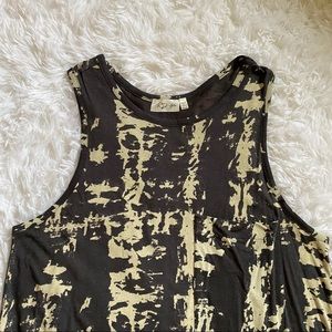 This NWOT bleach-style tie-dye dress has deep arm openings, a chest pocket, and slight hi-low hem.