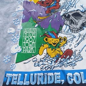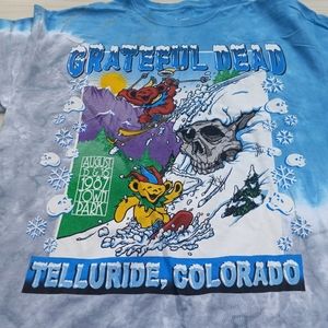 This is a blue and gray tie-dye grateful dead shirt made to feature two deadhead bears, one skiing and one snow boarding! All items are negotiable so please feel free to make an offer or add to a bundle for a customized discount.