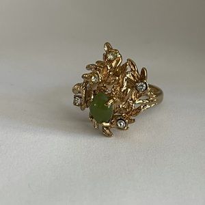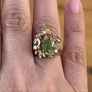 18KT HGE jade rhinestone ring