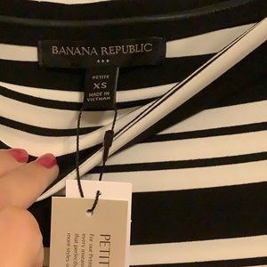 Beachy , Stylish , Banana Republic Summer Maxi-Dress . Features a hidden side part in the skirt to make it flow when you walk . White/Black Striped