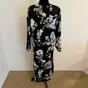 Fashion Nova Black Blue Floral Long Sleeve Kimono Jacket Size Medium