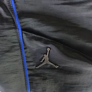 Color-"Black/Hyper Royal Sneakers",One-piece design,shiny woven fabric,Full mesh lining,shaped Fit,Elastic waistband with a webbing drawcord,Flight Suit Design Lines,Zippered entry from neckline to waist,Hip pockets provide storage,Jordan Standard fit
