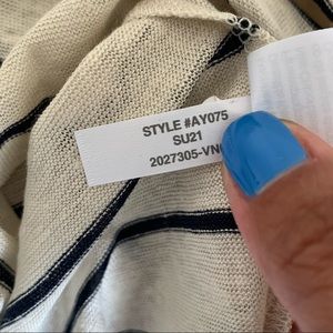 J. Crew Linen Scoopneck T-shirt in Stripe Navy Ivory Boxy Relaxed Fit Size S - NEW with tags. When laid flat, top measures approximately 22 inches from pit to pit and 24 inches long.