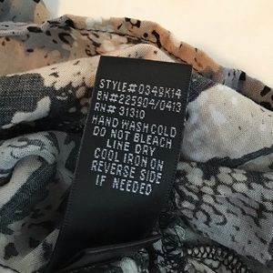 AGB: Black white tan and gray multicolor dress. Size 16. Has an elastic waist. Ruffle bottom. Made of 100% rayon. Has never been worn.