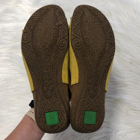 El naturalista borago slingback sandal. yellow. leather. tie closure. velcro ankle. open toe. size 40. good condition