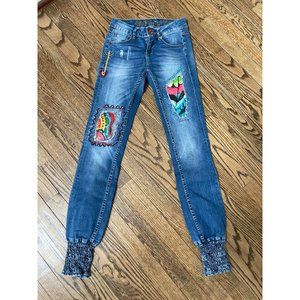 DESIGUAL Africa Arrow Rep Embellished Patchwork Jean Joggers - Size 24