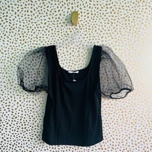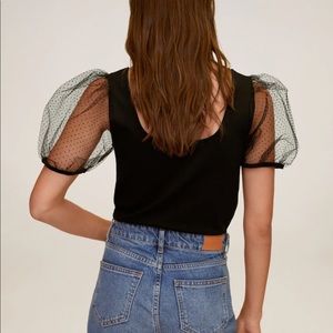NWT Mango Square Neck Mesh Sheer Puff Sleeve Top
