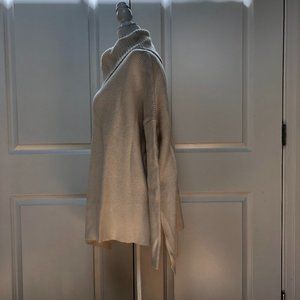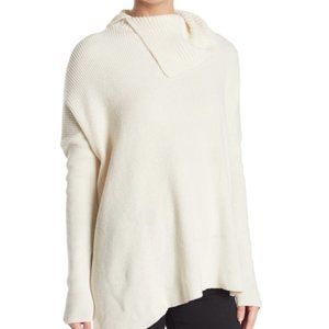 Slip into style with this dramatically drape collared sweater that features cozy long sleeves and a wool blend design.
