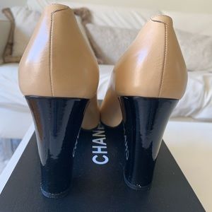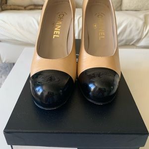 Chanel two toned beige and black leather high heel shoes. Size 37.5 in very good condition