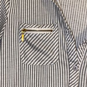 Size small in good condition on damage is the stitching on the pocket which is pictured closely grey and white striped can be rolled up has nothing bottoms to roll up and zipper function but there is double pocket only the old school one!