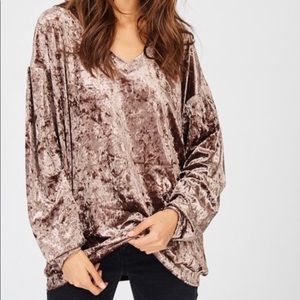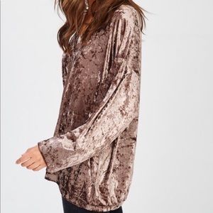 MOCHA gorgeous velvet top with volume sleeves. This is also available in black in a separate listing. 95% polyester, 5% spandex.