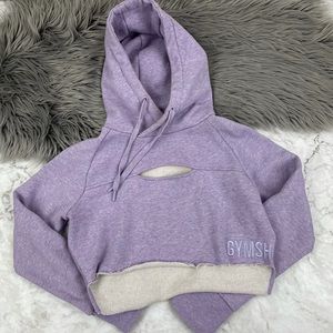 RARE Gymshark Cropped Raw Edge Hoodie Lilac Marl S