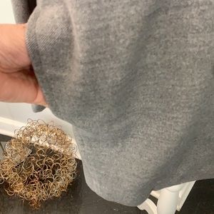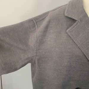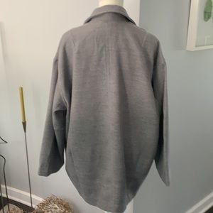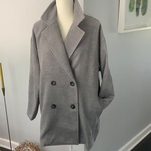 New Item, no flaws. Trendy double breasted coat in oversized design. Neutral grey color will work well with existing wardrobe items. The generous fit allows you to wear a chunky sweater, cardigan or sweatshirt underneath. Accessorize with scarves or hats. 100% polyester lining , 1/2 lined back, 3/4 lined sleeves. 2 front pockets. This size M coat will work well for a size L too. Size L will work well for XLPlease, check measurements for fit.
