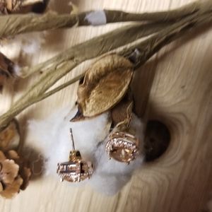 GORGEOUS!! Light Champagne Topaz with CZ's all around. Gold Plated. Post backings with lock closures. Very Shiny and Brilliant. Perfect as a gift or for yourself. NWT