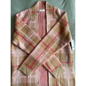 NWT BP. Long Plaid Cardigan Beige Nougat Dapper size M. NWT never been worn. 70% Acrylic 30% Nylon. Hand wash. Style # BP426730MI