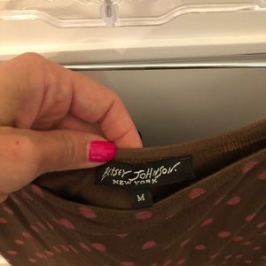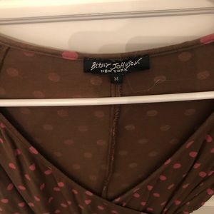 SOLD ON EBAY - From early 2000’s betsey Johnson chocolate brown and pink polka dot matching skirt and top. Mid length skirt with velvet detail. Super cute! Great condition! Size medium