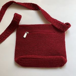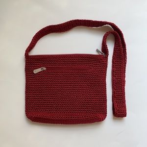 The Sak vibrant red crocheted shoulder bag. Excellent condition. Barely used.