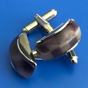 Silver-Tone & Purple Acrylic Cuff Links