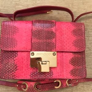 Limited Edition Snakeskin (REAL snakeskin- not embossed) Jimmy Choo - GORGEOUS Bag!!!! You won’t find this beauty elsewhere- 💕- Pristine Condition! In NEW Condition. DARLING bag!!!! Carry it by the handle or over the shoulder with longer strap or even crossbody. FABULOUS FIND! 💕💕💕💕💕 TV 600