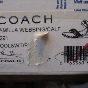 Top strap is leather and toe strap is canvas with silver tone buckle accent.