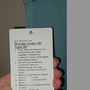 Train, flow and restore in the versatile Wunder Under collection. Powered by Luxtreme™ fabric, these tights are a sweaty staple. New with tags. In color Tidewater Teal.