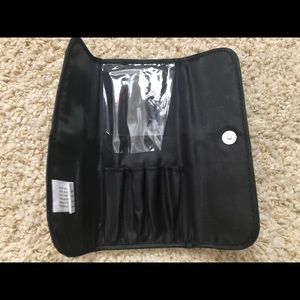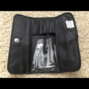 Pouch/Case interior features individual holders for each brush(4)and dual vinyl flaps to protect lining. Foldover design slips easily into bag for travel and on the go touch ups. Snap closure.