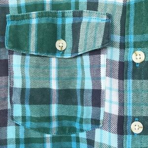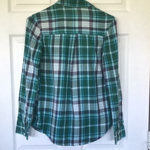 Button down soft flannel shirt. Extra small. Measures 17 inches pit to pit. Shirttail hem. Blue green plaid.