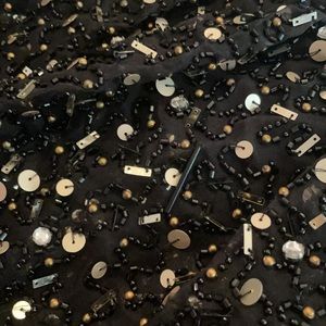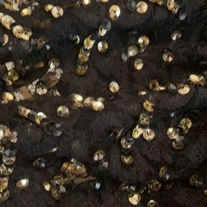 Heavy, high quality Alice and Olivia party skirt with mixed metals (gold, silver, clear gems) and a trio of patterns. Worn maybe 4 times, and has a few loose threads. Zippers up the back. Looks super sharp with black pantyhose! Pet free and smoke free home.