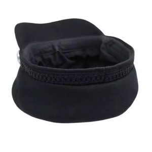 New! Fun black newsboy cap with braided detail and silver hardware.
