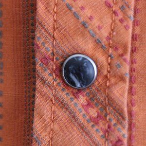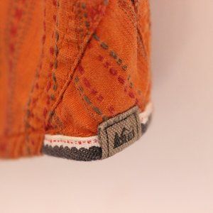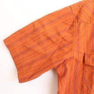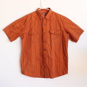 REI full button down short sleeve shirt in excellent condition. Men's size L. Orange with a stripe pattern. 100% cotton. Very clean. No rips, stains or holes. Comes from a smoke free home. Fast, same day shipping via USPS. Questions, please ask! Thanks for looking.