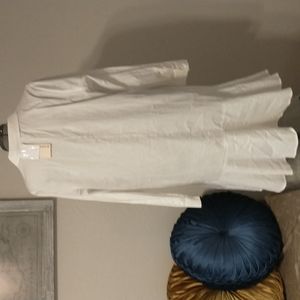 New With Tags. Long, white button down-can be worn as a long top or a dress. It has a cute ruffle at the bottom to make it a little more flowy.