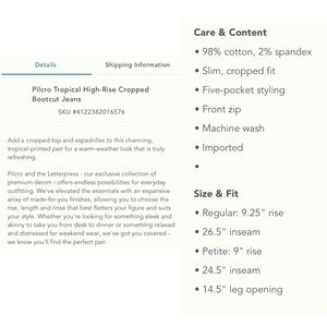Pilcro Tropical High-Rise Cropped Bootcut Jeans