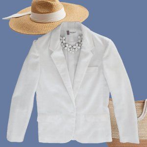 Probably a polyester blend to have laundered so nicely. It's a nice textured linen look.