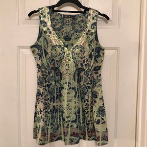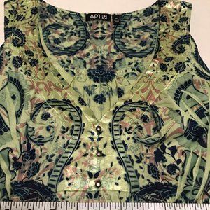 APT 9 Top Sleeveless Green Print Sz Med